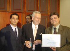 Certificado do Prêmio Top Qualidade Brasil recebido das mão do sr. Alexandre Garcia, apresentador da Rede Globo
